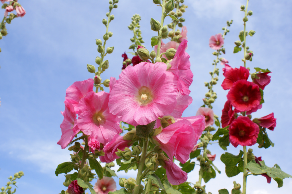 De stokroos is een hele dankbare plant, die heel lang bloeit. De indrukwekkende hoge bloeiwijze van soms wel 2 meter hoog met grote kelkbloemen trekt meteen de aandacht. De gewone stokroos bloeit pas in het tweede jaar. Je zaait hem in juli of augustus en hij bloeit in de zomer van het volgende jaar. Maar de minder bekende eenjarige stokroos (Alcea rosea ‘annua’ ) kan je in april zaaien voor bloei later in de zomer. De eenjarige stokroos blijft meestal iets kleiner, maar de bloemen zijn minstens net zo mooi! Je kan beide stokrozen voor zaaien, maar neem dan wel een hoge pot, vanwege de lange wortels die de stokroos maakt. Ter plaatse zaaien kan ook, al kunnen slakken dan voor wat schade zorgen.